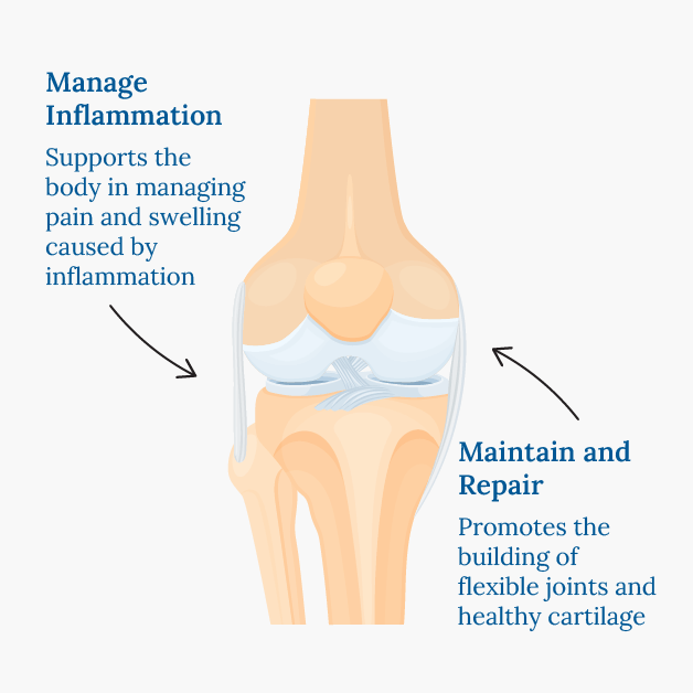 The compounds in Green Lipped Mussels include omega-3s and glycosaminoglycans, also referred to as GAGs or the “glue of life”. These work with chondrocytes to manage joint pain and inflammation, channel the activity away from degradation towards a focus on repair, and provide the raw materials to rebuild cartilage within each joint.