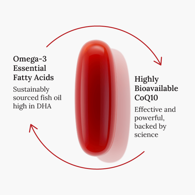 Omega-3s are good for your heart and blood vessels in several ways. Evidence shows that EPA and DHA may help support cholesterol balance, blood vessel function, and overall cardiovascular conditions. Our premium fish oil with CoQ10 provides 1100 mg of omega-3 fatty acid per serving, plus a rich dose of highly bioavailable ubiquinol CoQ10 (Kaneka Ubiquinol™) and lycopene (Lyc-O-Mato®), offering additional cardiovascular benefits, support critical CoQ10 levels, especially for those on statin medication.