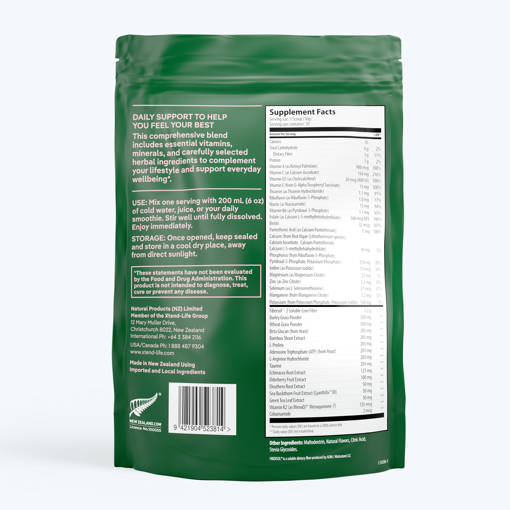 With essential vitamins, minerals, amino acids, adaptogens, antioxidants, and prebiotic fiber, it’s designed to support the things that matter most: energy, focus, gut health, immunity, skin, and bones, all in one easy, great-tasting scoop.